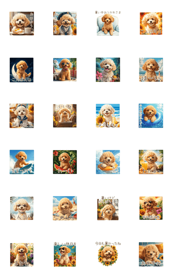 動く夏の子犬トイプードルのスタンプ♪トークをもっと楽しく!