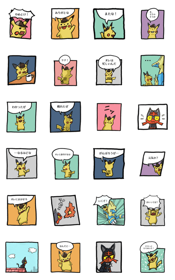 | スタンプ説明 | 「名探偵ピカチュウ ライムシティガイド」のコミックがLINEスタンプになったぞ!コミックは「ポケモン言えるかな?」でお馴染みのイマクニ?氏が執筆! |