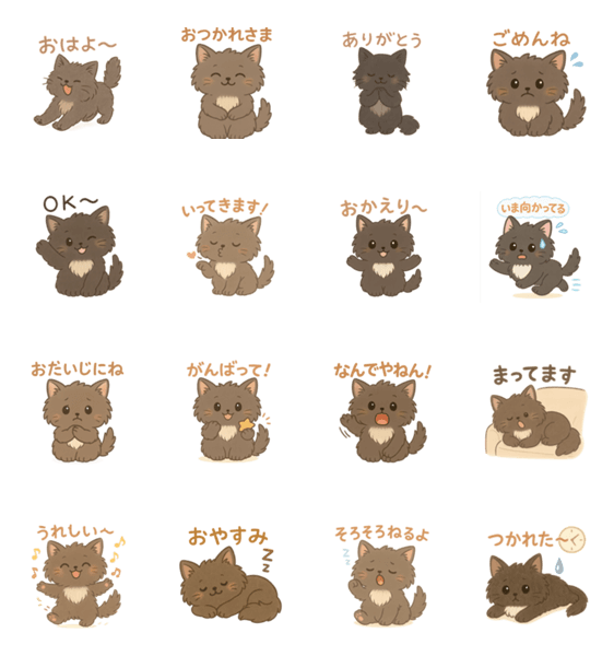 | スタンプ説明 | Say hello, thank you, and more with these adorable fluffy black cat stickers! Their everyday greetings will add warmth and charm to all your chats |