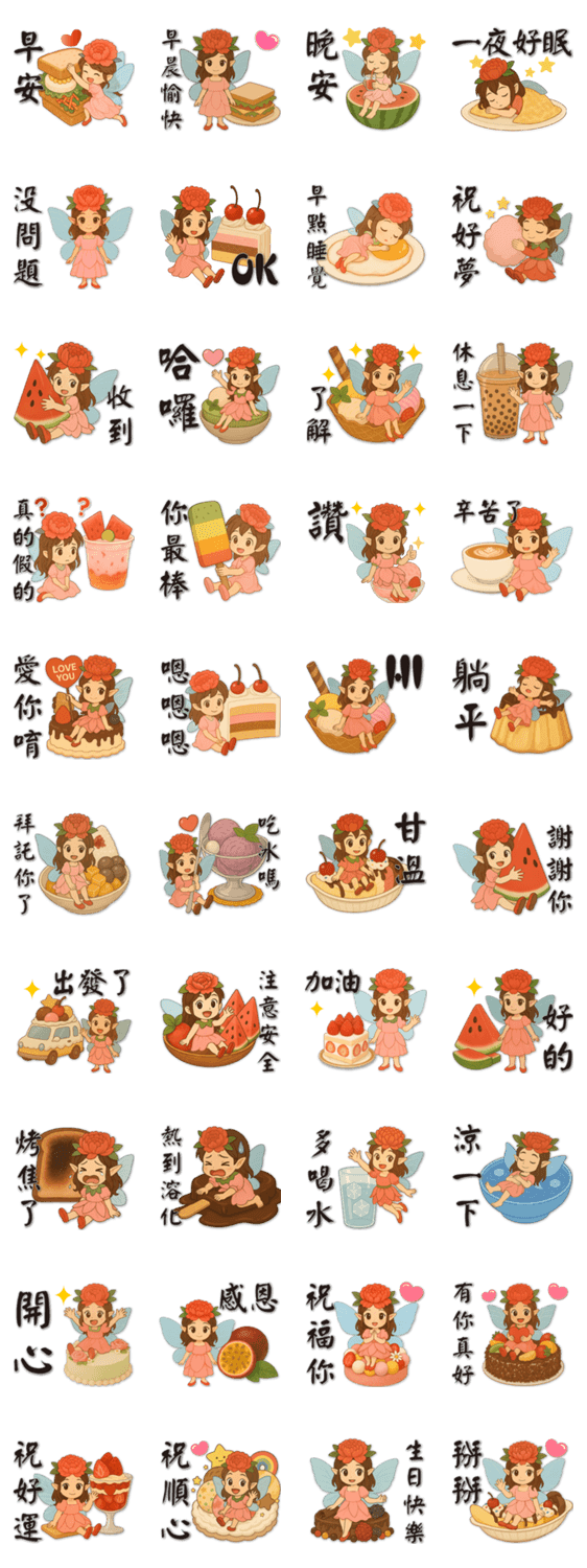 | スタンプ説明 | Cute Peony Fairy and Delicious Food-Practical Greetings for Everyday Life |
