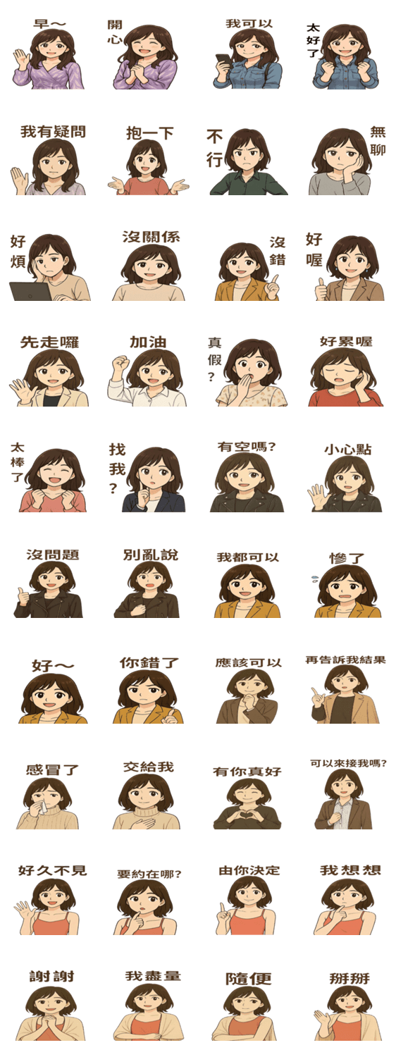 | スタンプ説明 | A graceful girl with big eyes and sweet dimples. Daily phrases with changing moods and outfits - perfect for everyday chats! |