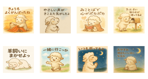 | スタンプ説明 | モコモコのひつじが、やさしい言葉で心をあたためます。日常のねぎらい、感謝、そっと背中を押したいときに。こころが少し疲れた誰かにも、そっと寄り添うスタンプです。 |