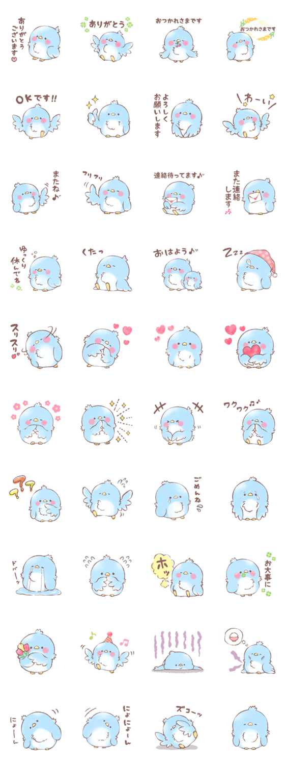 毎日ほっこり幸せに過ごしている青い鳥さんのスタンプです♪