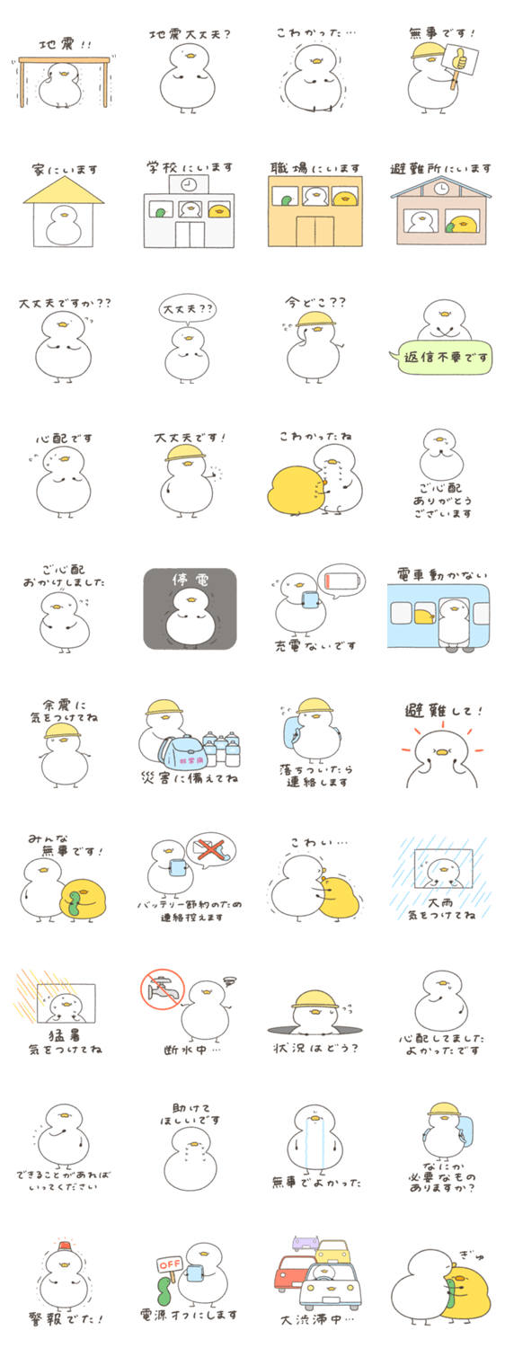 地震、大雨、台風などの自然災害や緊急時に使えるスタンプです。