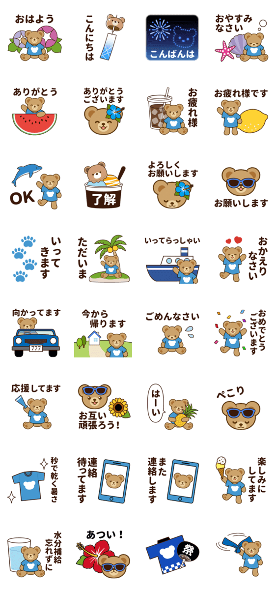 推し色テディベアの夏【青】 -LINEスタンプマニア