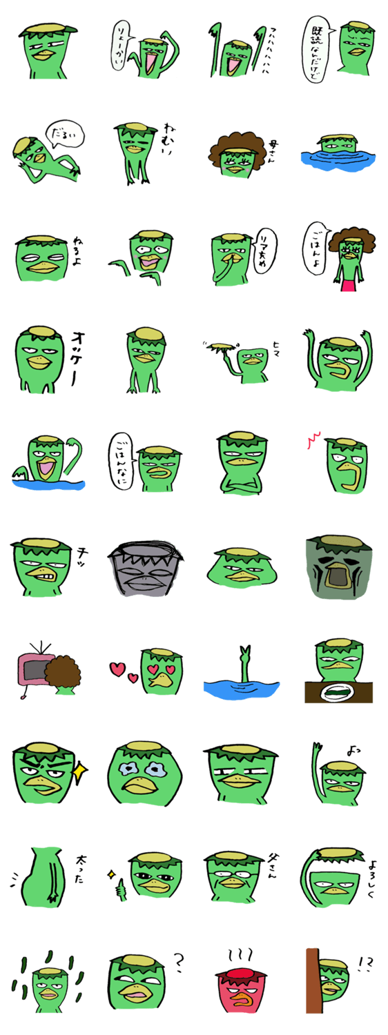 こわい顔したかっぱ「こわっぱくん」のスタンプです。