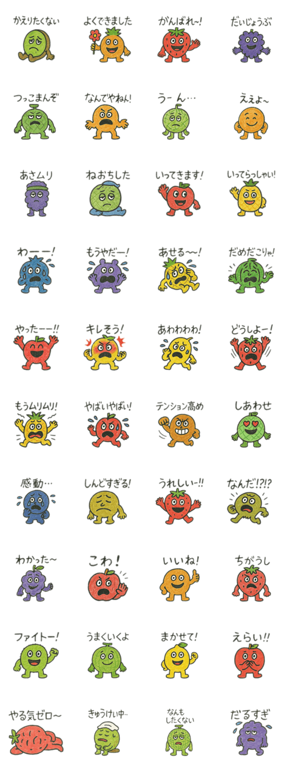果物?達が日常の会話、返答、感情を代弁、彼氏や彼女、夫婦、友人への連絡に使えるフレーズ