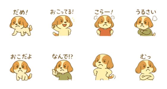 癒し系のキャバリアが、いつもとちがってぷんすか怒ってる!?怒りモードを詰めこんだスタンプです! 怒っててもかわいいキャバリアが、あなたの気持ちを代弁します。