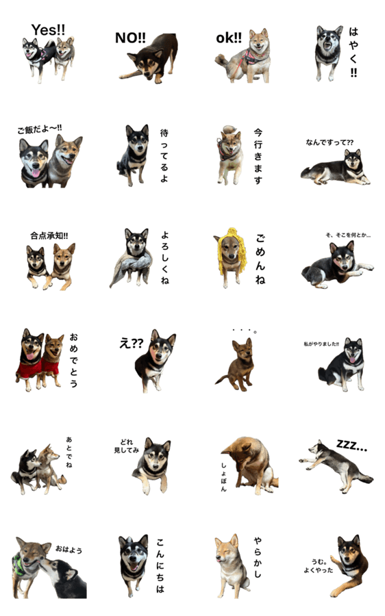 黒柴の愛泉(めい)と胡麻柴の愛月(なつ)のLINEスタンプです!!