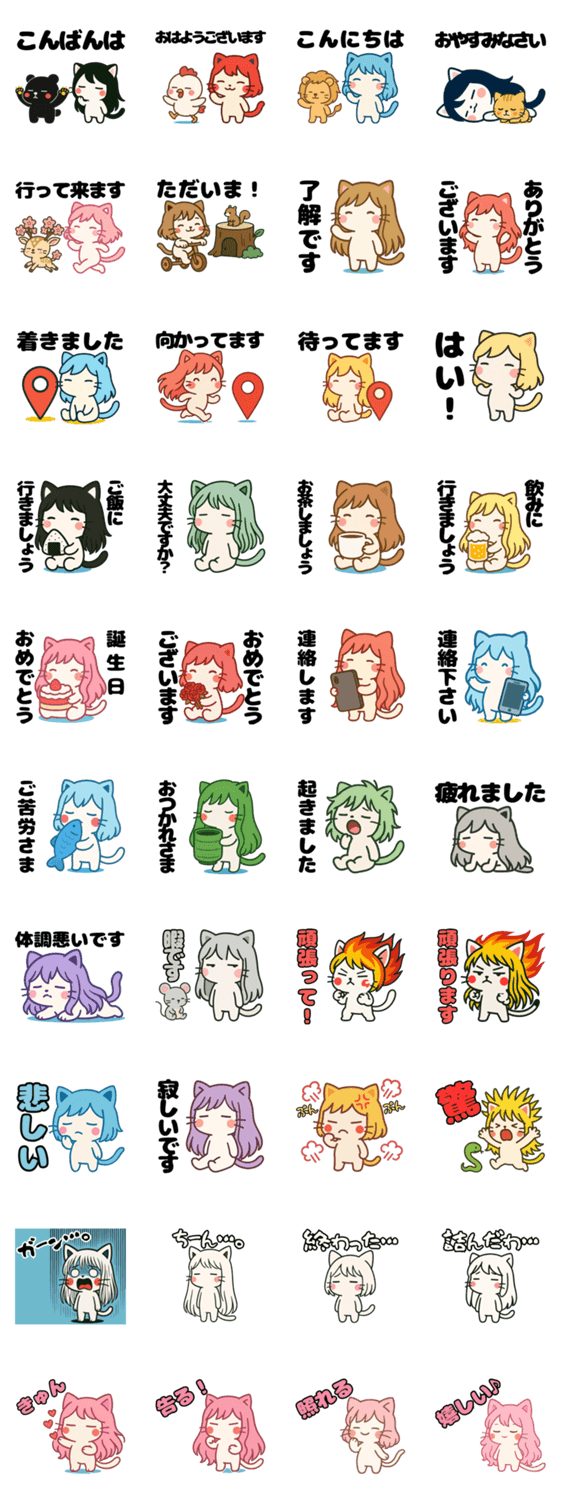 | スタンプ説明 | 【敬語】カラフルな髪の毛を生やした「ねっ娘」達と楽しくコミュニケーションを取りましょう! |