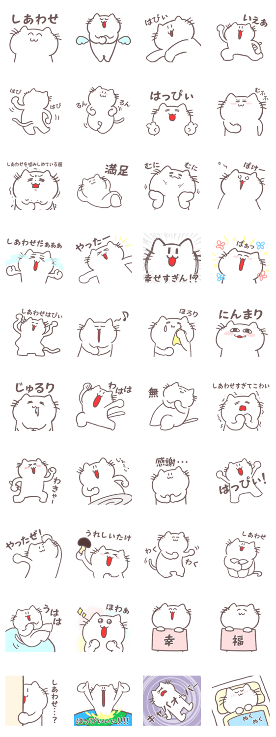語彙力ないネコのスタンプ 幸せがいっぱい -LINEスタンプマニア