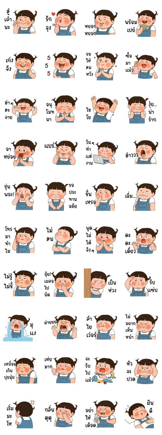 | スタンプ説明 | いたずら好きなおさげ髪のぽっちゃり女の子、かわいい女の子のステッカー、遊び心のある女の子 |