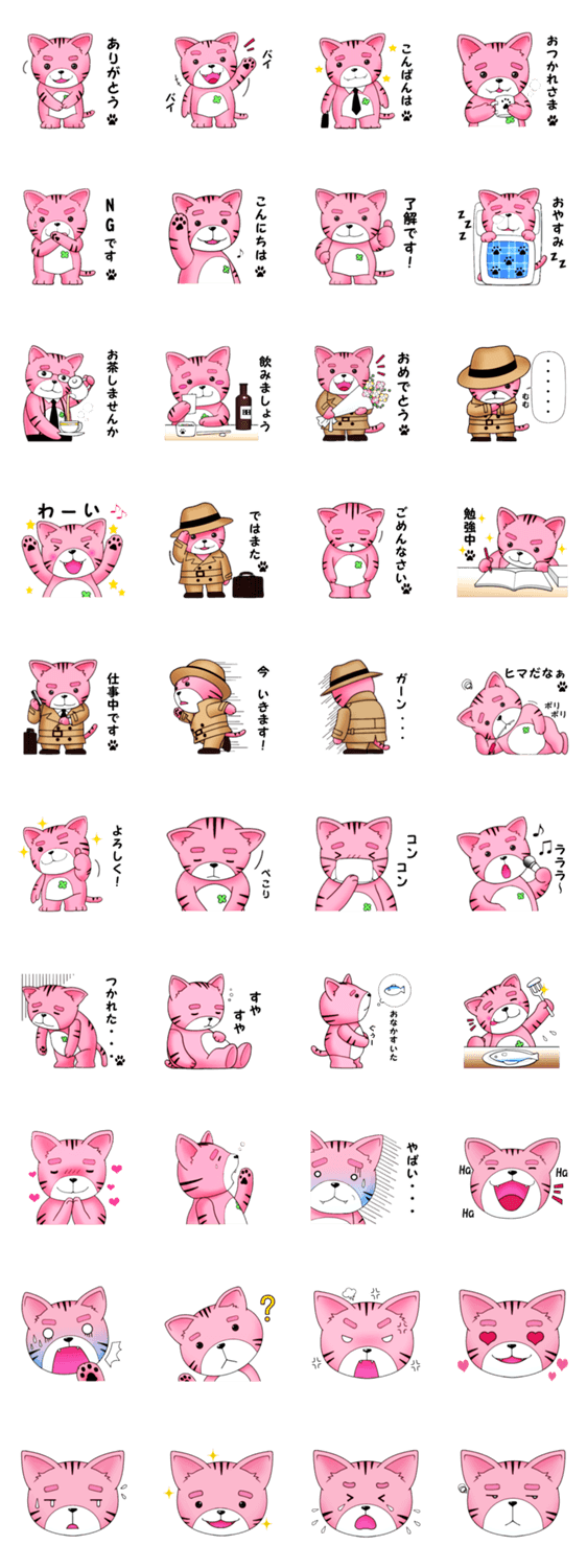 ブチャねこは四つ葉のクローバーがトレードマークのピンク色の猫。大人の人たちも使いやすいようにダンディバージョンのスタンプも用意しました。