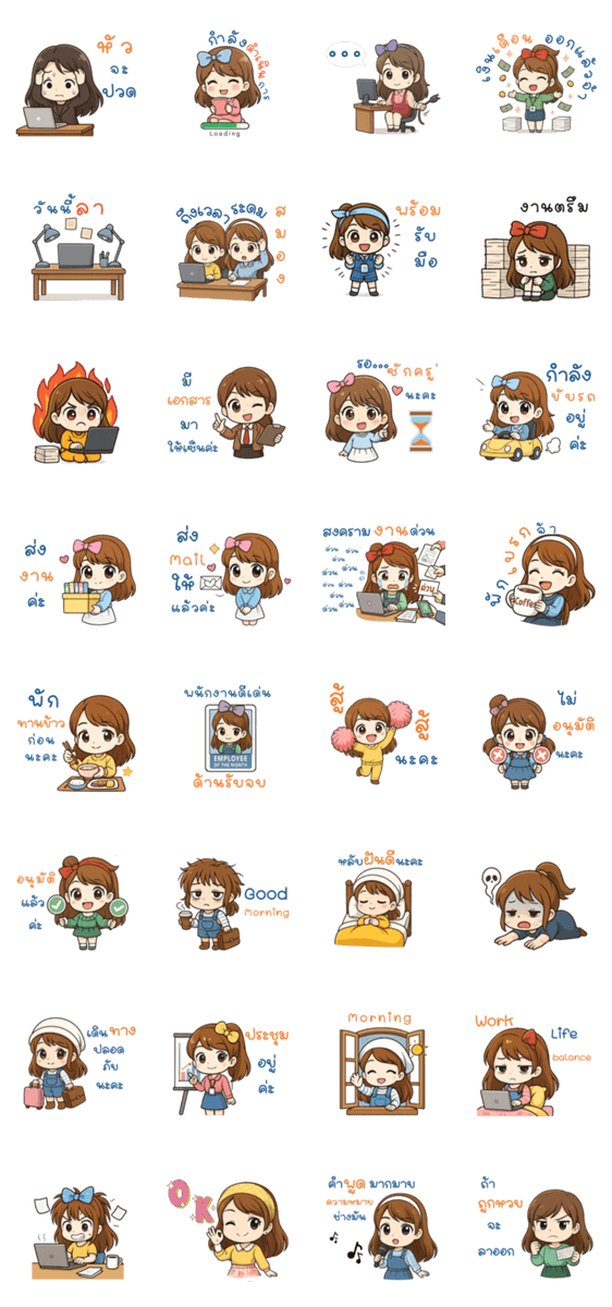 | スタンプ説明 | Moo Ing works in a lively office where unexpected troubles happen every day, bringing fun and challenge to her routine. |