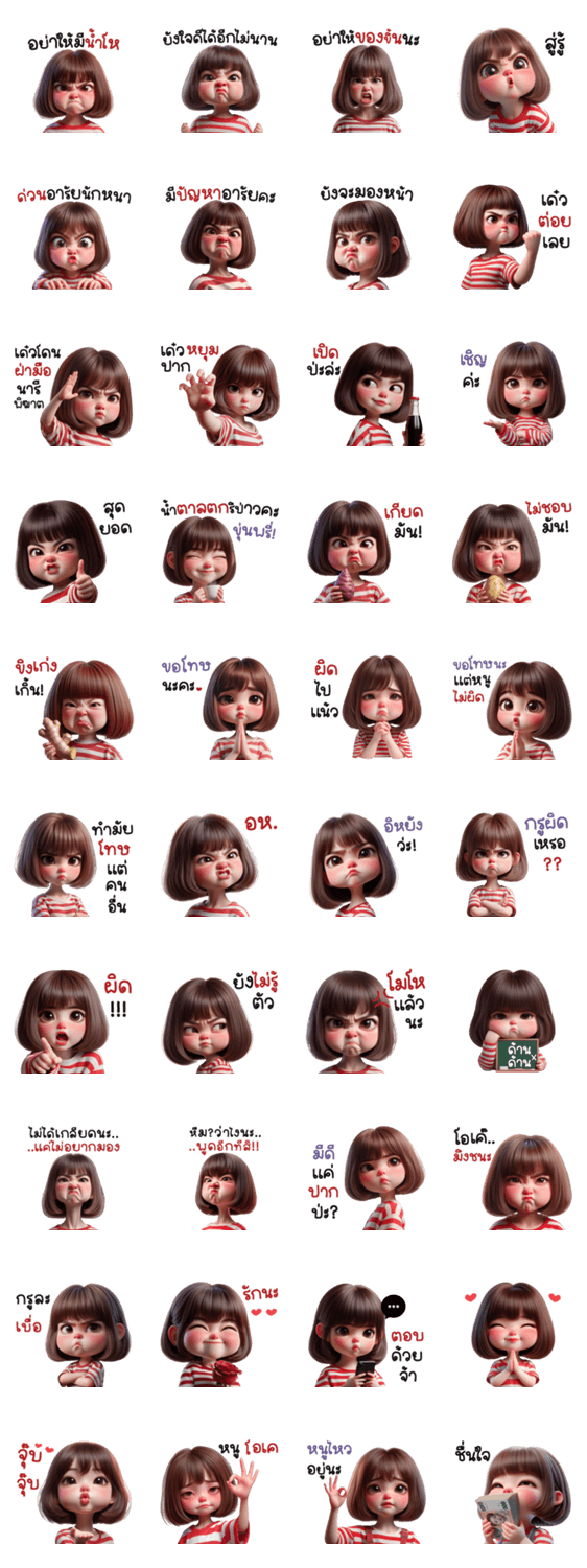 Bob-haired girl- I'll pinch your mouth… -LINEスタンプマニア
