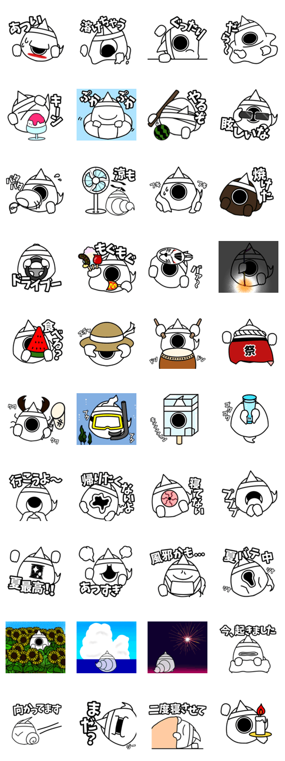 ふゆふゆ幽霊のスタンプです。夏に使えるスタンプを集めました!今年も暑い夏をこのスタンプと一緒に乗り切ろう!!