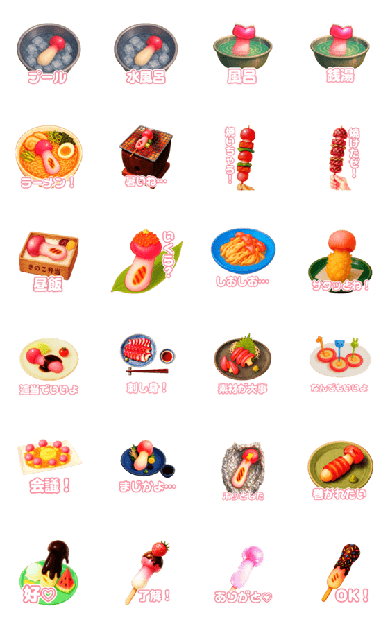 可愛いきのこ料理レシピ(セリフ入り) -LINEスタンプマニア