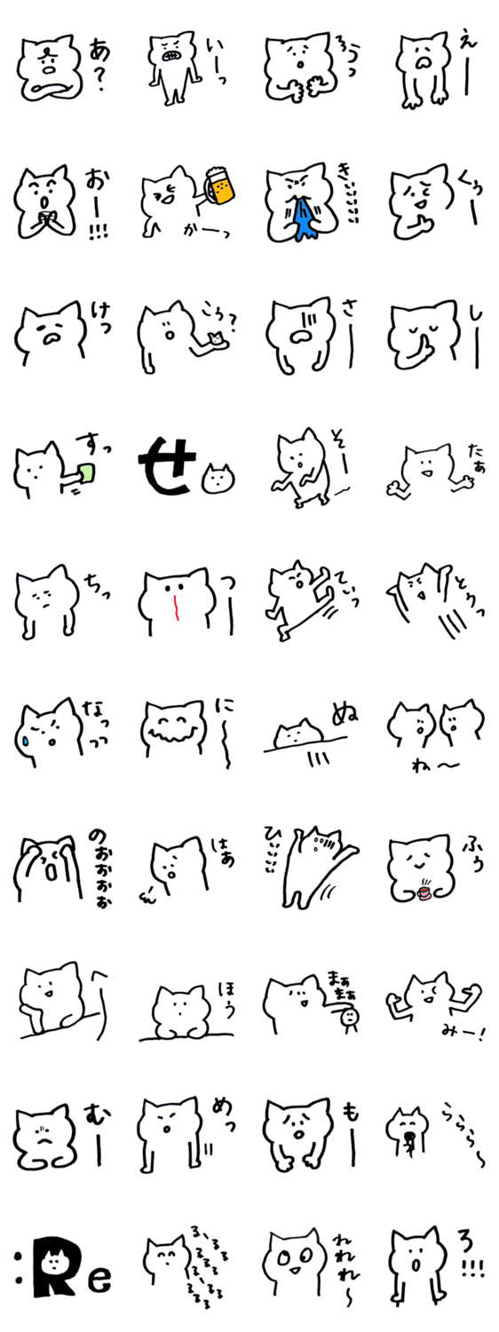 白ネコのあいうえお・・・ってるスタンプ