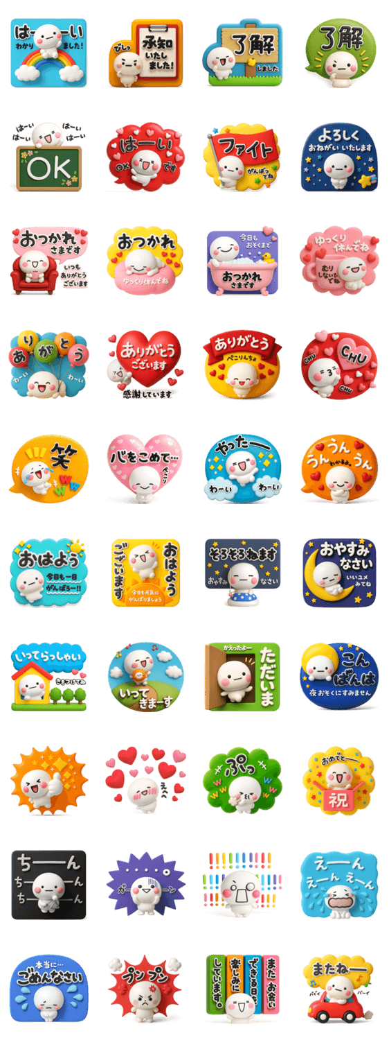 | スタンプ説明 | カラフルな気持ち伝えるスタンプです。みんなでずっと使える内容を揃えましたのでスタンプ初心者の方にもオススメです。 |