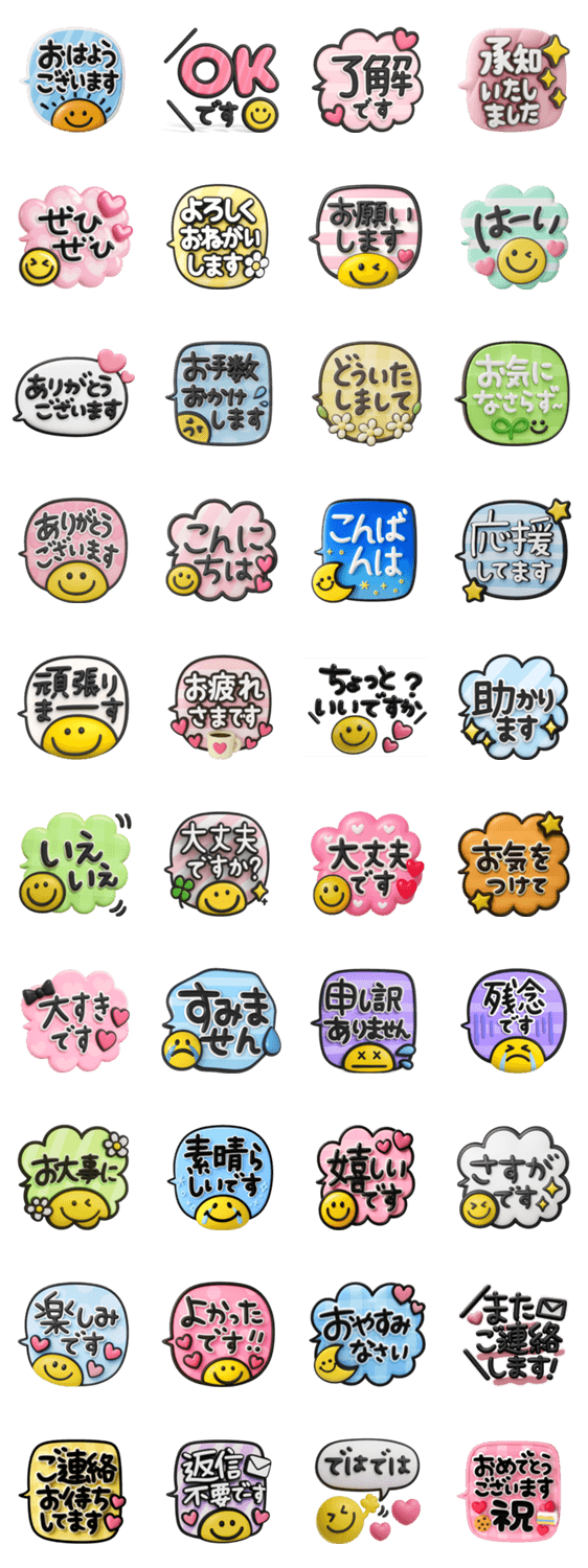 超立体3D吹き出し♡カラフルなデカ文字スタンプ♡ 毎日笑顔でスマイルいっぱい♪カラフルで可愛い敬語の吹き出しです!