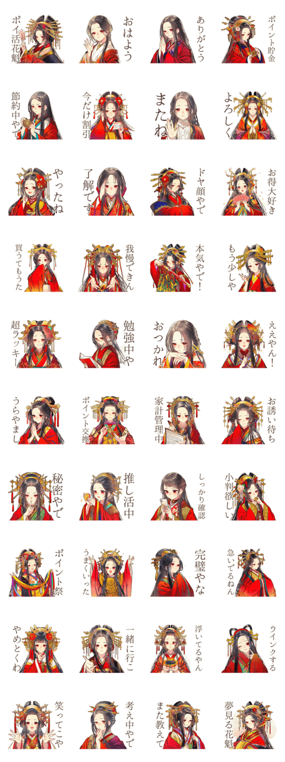 和風の着物美麗花魁がポイ活生活!水商売や嬢、日常会話にも使えるLINEスタンプです。