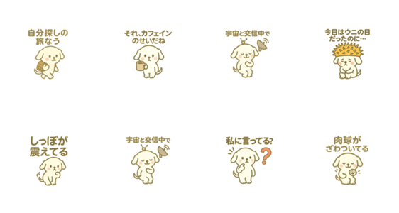 白くてふわふわ、ちょっぴりおちゃめな「まるちー」の日常スタンプ。ゆるくて癒される表情が、トークをほんわか彩ります。