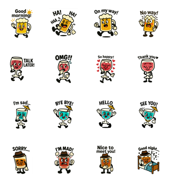 ほろよいカルテットの日常感情スタンプ -LINEスタンプマニア