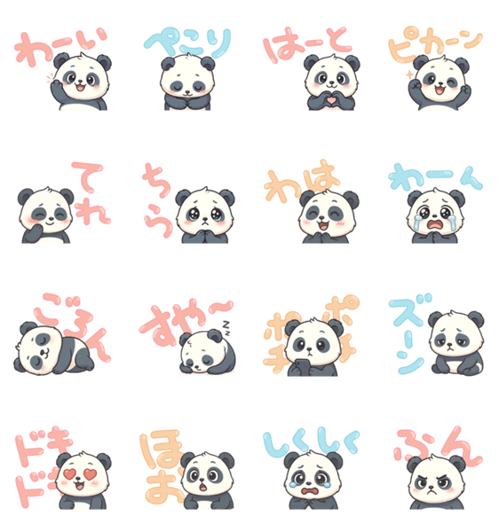 大きな文字で気持ち伝わる!照れ・泣き・ぽちぽち…毎日使える感情たっぷりのパンダスタンプ。/パンダ/かわいい/癒やし/日常