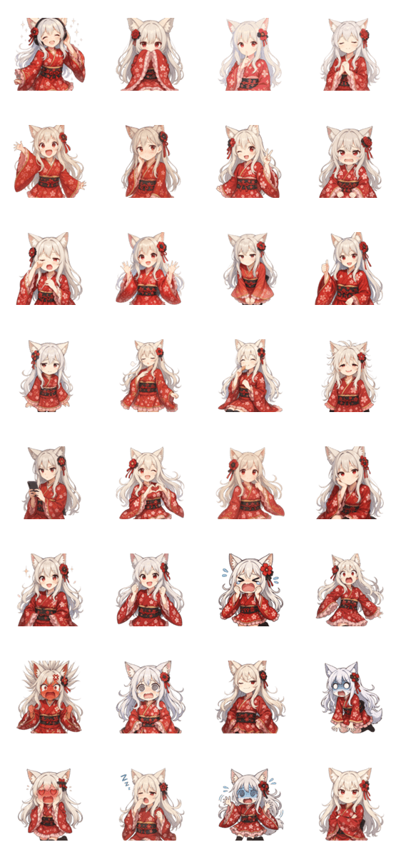 じもじしたり、叫んだり、涙ぽろぽろ…!表情豊かな狐耳少女「こゆき」が、あなたの気持ちを全力で代弁!会話にぴったりの大感情スタンプ!