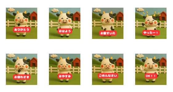 ゆるキャラ風のうしが、ありがとう・ごめんね・おはようなど日常の気持ちをかわいく伝えます。表情豊かで癒されるスタンプです♪