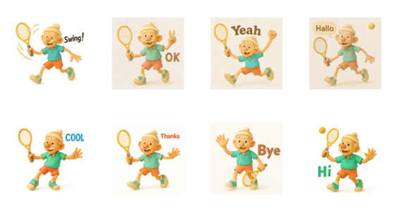 テニスじいちゃん、今日も絶好調!元気が出るゆるスタンプです。