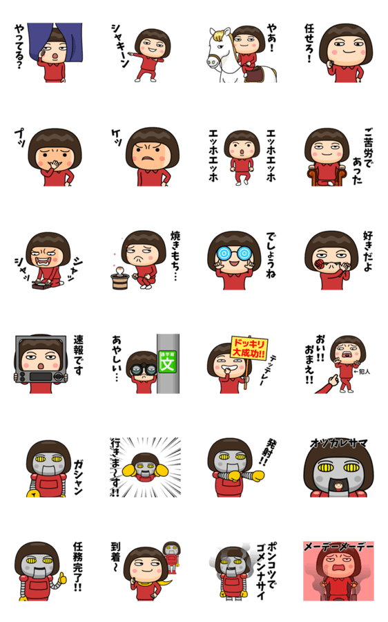 芋ジャージ女子が使う芋ジャージスタンプ第40弾『小ネタ編』。クスっと笑えるネタ満載のパック。芋ジャージ型ロボットのメカジャージも新登場!