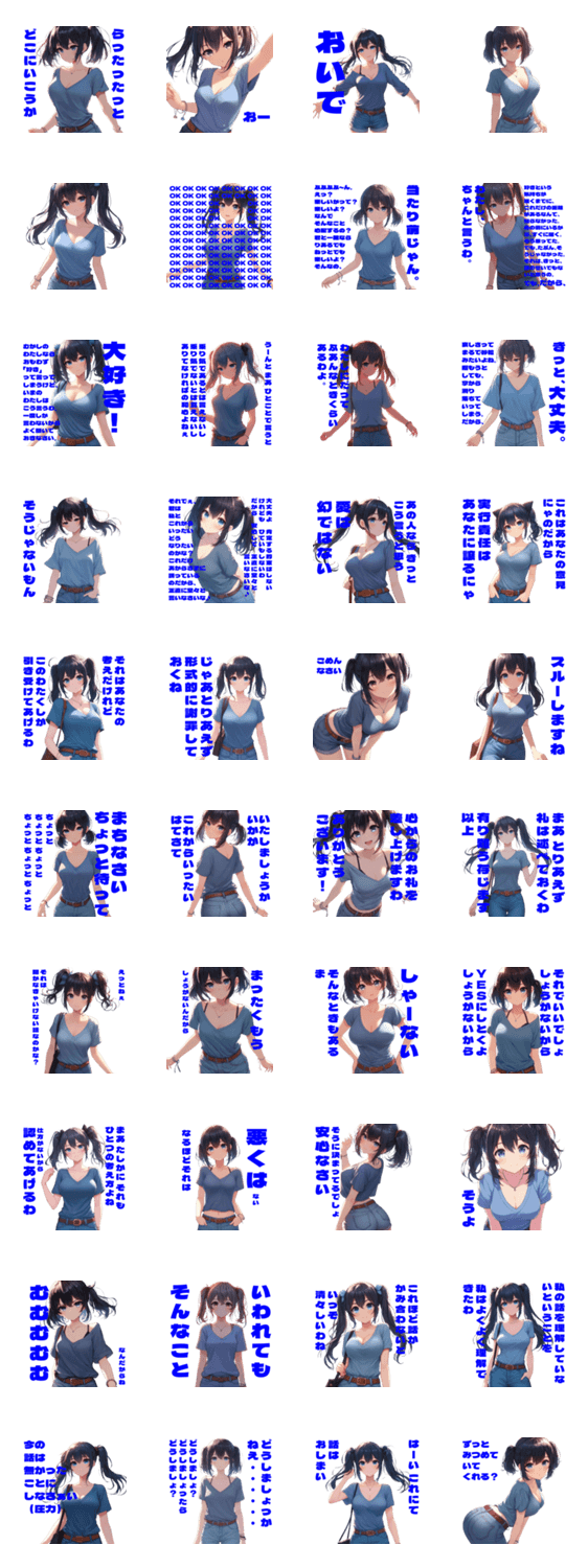 黒髪ツインテの青いVネックのあの子1 -LINEスタンプマニア