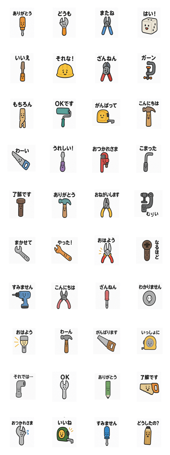 | スタンプ説明 | Bring your chats to life with these adorable tool characters! |