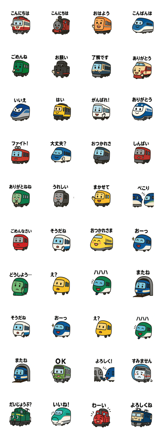 Brighten your chats with these cute, expressive train characters as they greet, cheer, and react with you!