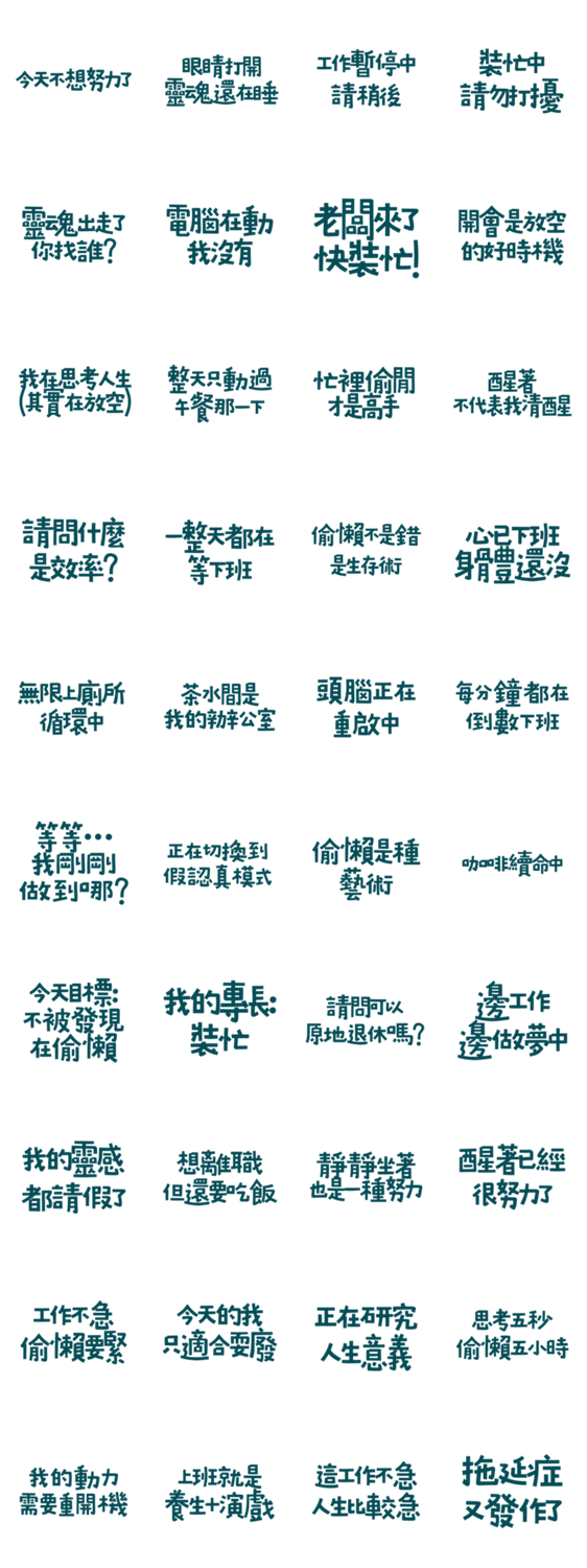 | スタンプ説明 | The boss is here, hurry up and get busy. Blue and green |