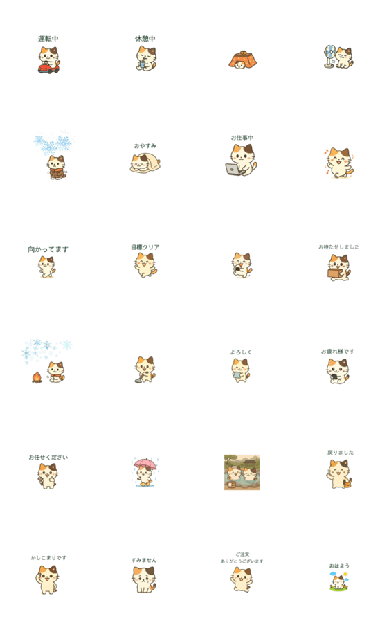 Nyantaro the Cat covers all the greetings you need throughout the day.