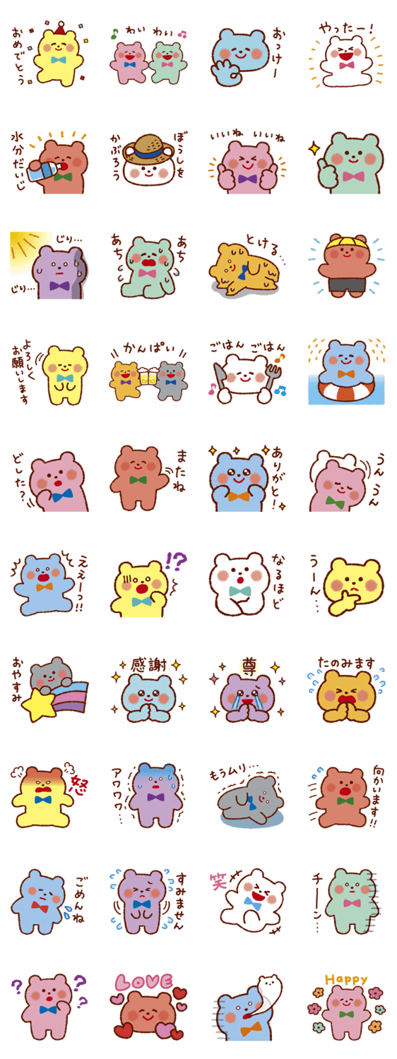 表情いっぱいで気持ちが伝わる!カラフルなくまさんのスタンプです♪ かわいい/シンプル/日常/くま/クマ/熊/夏