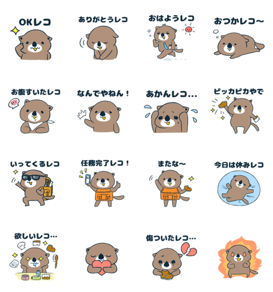| スタンプ説明 | 靴磨きを広める旅の途中、レッコがあなたのトークに登場! 関西弁でしゃべるラッコ職人。ちょっぴりドジで、だけど心はピカピカ。 使いやすい全16種のスタンプです! |