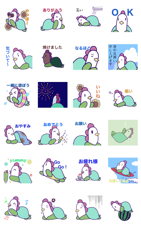| スタンプ説明 | It is a Sticker of a mysterious creature "Niwakame" in which a chicken and a turtle merge. |