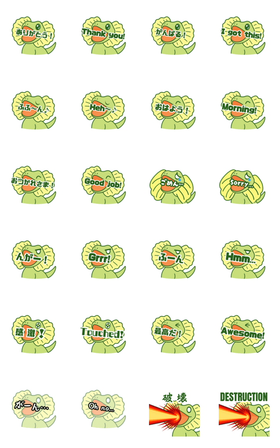 スタンプ説明 表情ゆたかなエリ吉で気持ちを伝えてみてね