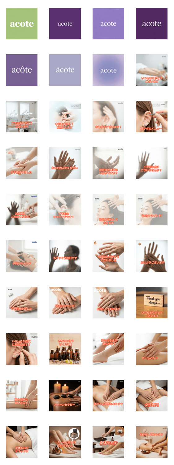 | スタンプ説明 | アロマテラピーサロンのショップ「acote」のLINEスタンプです |