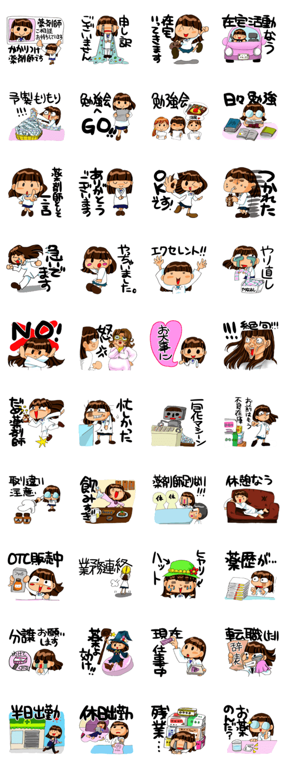 かかりつけ薬剤師の日常をスタンプにしました。仕事からプライベートまで色々使えます。
