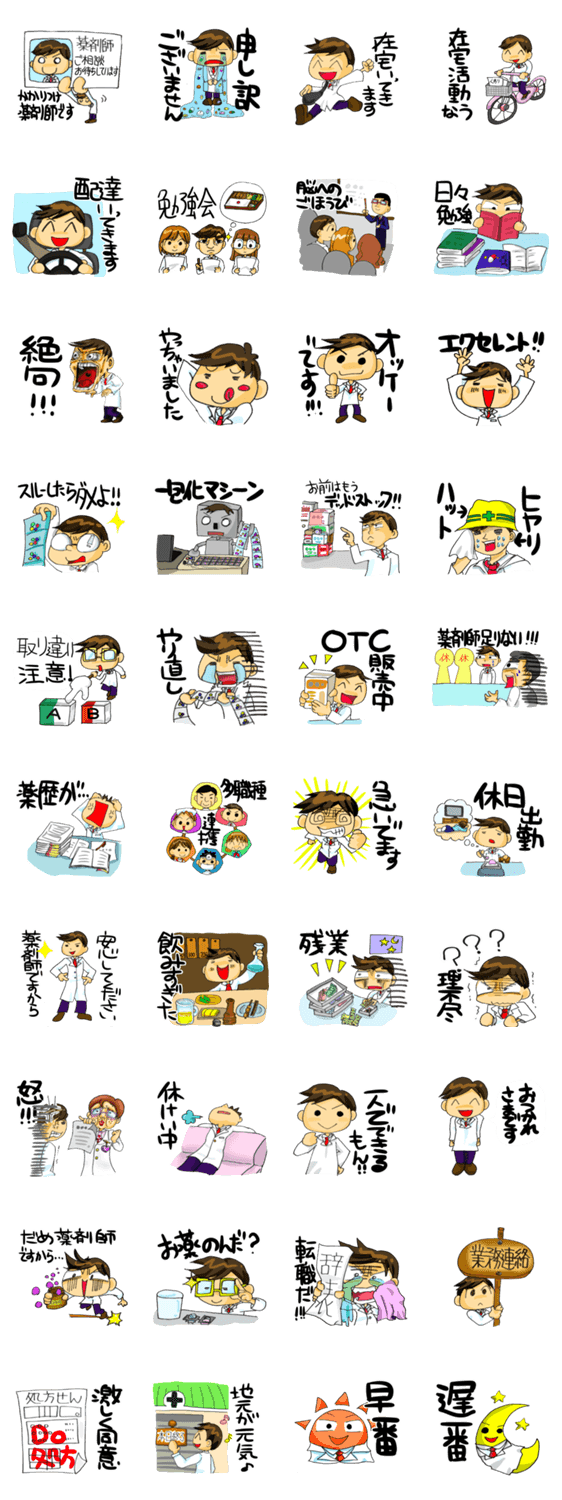 かかりつけ薬剤師の日常をスタンプにしました。仕事からプライベートまで色々使えます。
