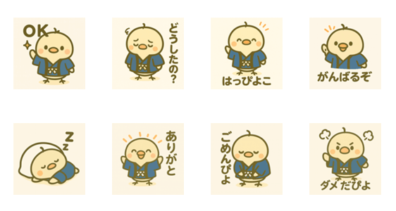 | スタンプ説明 | Meet Happiyoko, a cute little chick in a happi coat! Happy, sleepy, sorry, or fired up-Happiyoko adds fun and charm to every chat. |