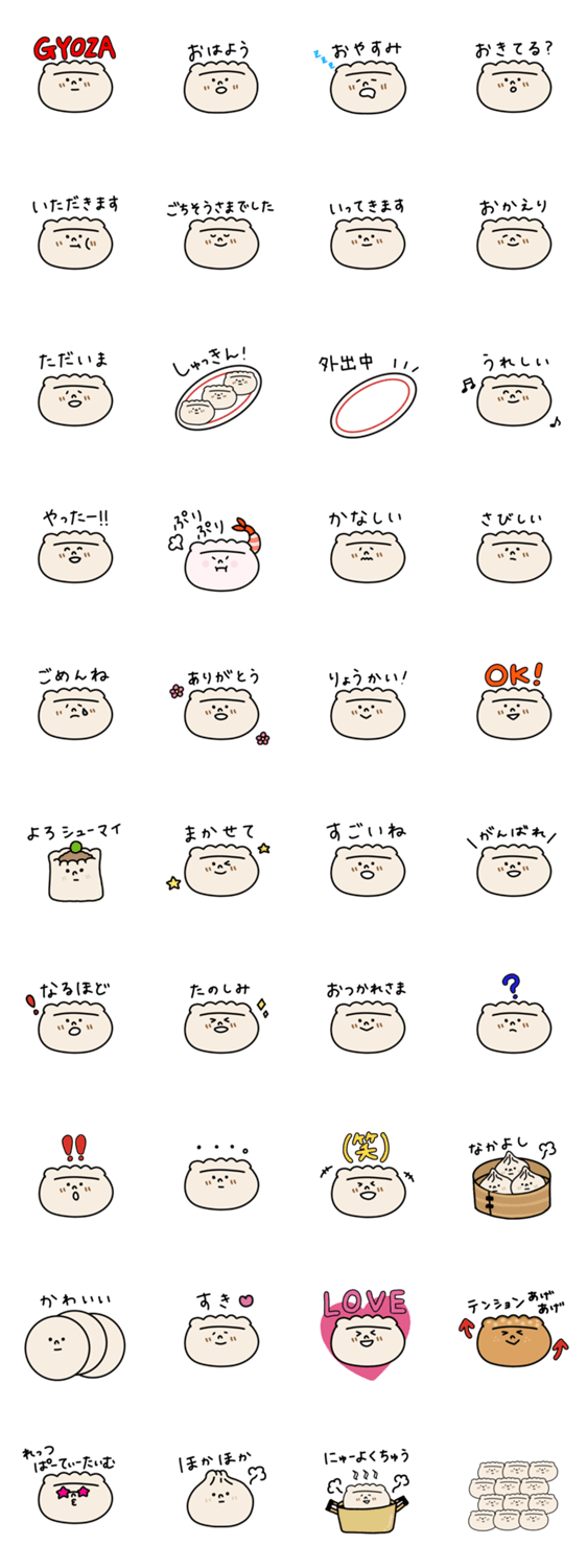 日常で出来るだけ使いやすいスタンプにしました。餃子をモチーフにしたゆるっと使えるスタンプをぜひっ!