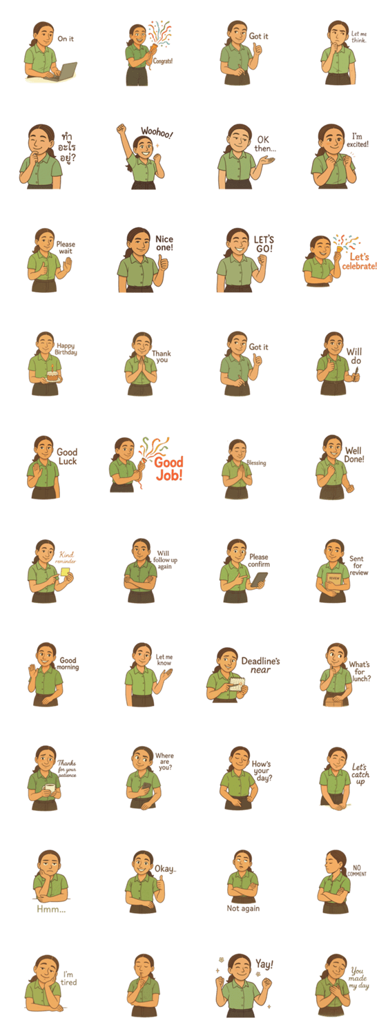 Need to respond with grace, charm, and a bit of Pila calm vibe? These hand-drawn stickers are perfect for polite replies in work or casual chats.