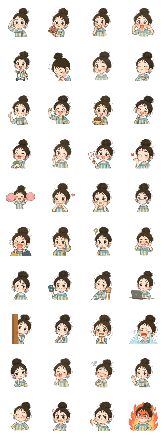 | スタンプ説明 | おだんごヘアの元気な女の子、ファッショニスタ、かわいい女の子のステッカー |