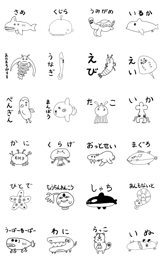 | スタンプ説明 | ただこうじげんのうみのどうぶつがいるだけのなぞじゅようスタンプです。 |