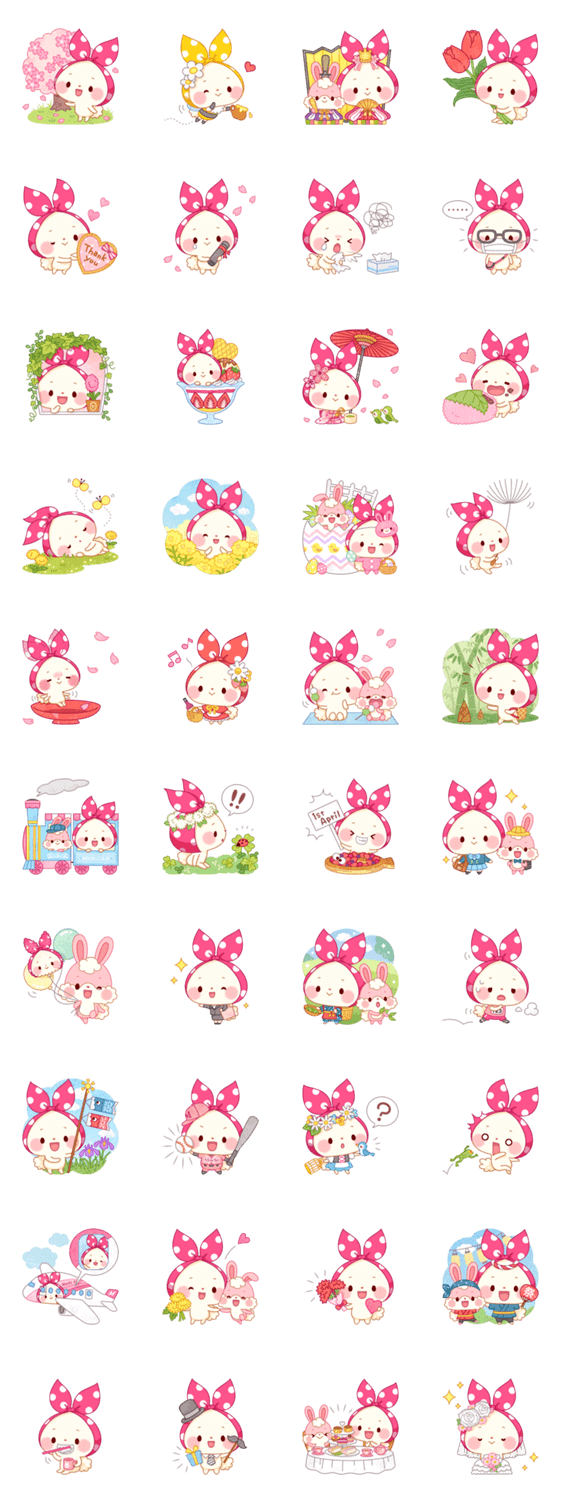 うさぎのようで、うさぎじゃない「もちずきんちゃん」第6弾!春から初夏にかけて使えるスタンプです。